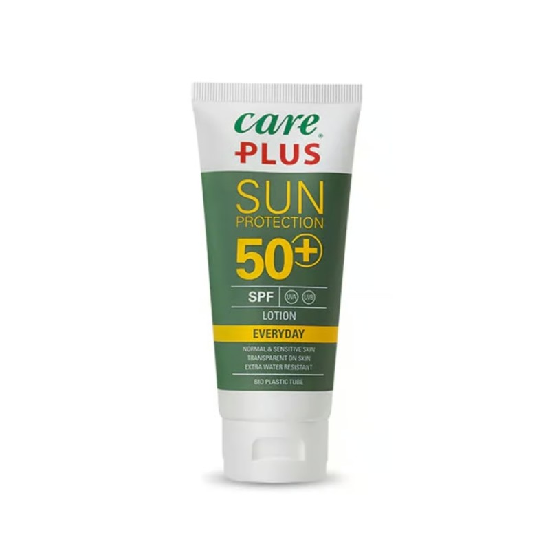 La crema solare Care Plus è impermeabile e protegge dai forti raggi UV con SPF 50+. Ideale per chi prende il sole in spiaggia, in acqua e in montagna. La protezione solare deve essere applicata 30 minuti prima di prendere il sole. Questi ingredienti ti proteggono anche dalle punture di medusa in acqua.