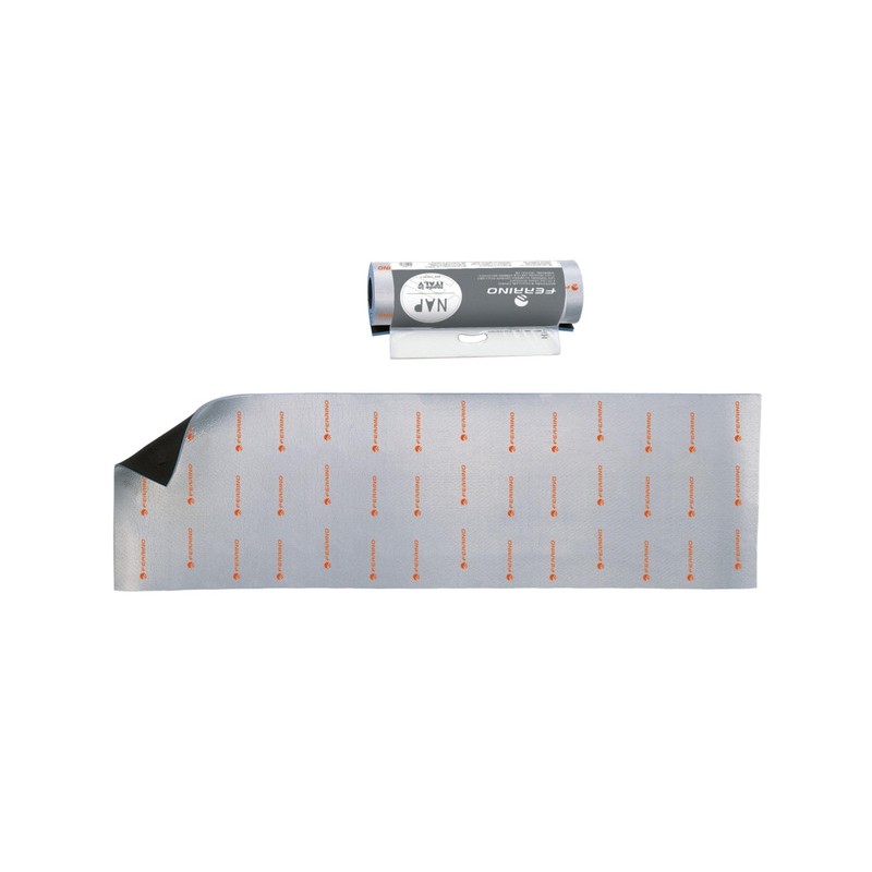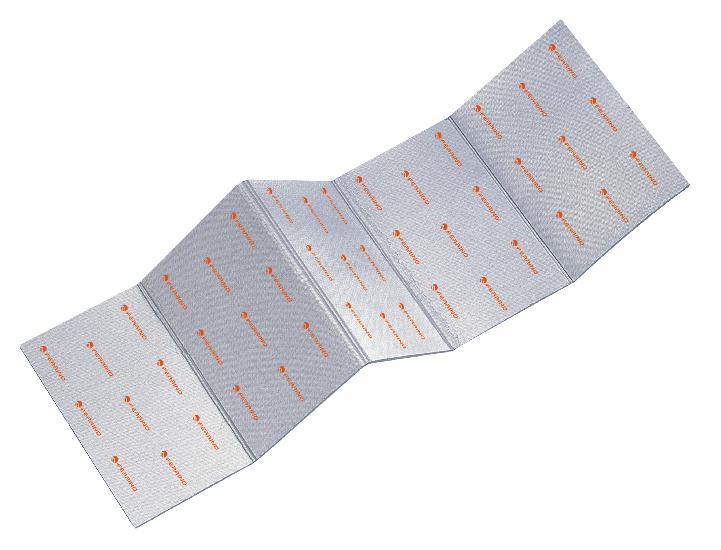 Materassino in polietilene espanso a cellule chiuse reticolato | Lato superiore alluminato goffrato riflettente e lato inferiore con film gommoso antiscivolo.
