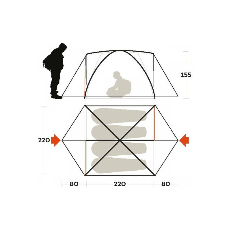 Lhotse 4 è la tenda 4 posti ideale per utilizzo in campo base. Il riparo che offre il massimo comfort e spazio uniti a robustezza, aerazione e coibenza termica.