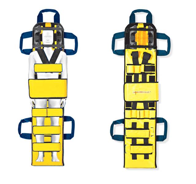 Unisce la stabilizzazione cervicale a un sistema di immobilizzazione per il trasporto. Progettato per bambini fino a 30 kg e di altezza da 60 a 120 cm. Le cinghie addominali, per le spalle e per il torace possono assumere lunghezze variabili e la loro chiusura strap facilita il controllo del sistema respiratorio e cardiaco del bambino. Le cinture per gambe e caviglie, solidarizzate con triple cuciture alla tavola con chiusura strap, permettono di trattare e immobilizzare gli arti inferiori separatamente. La posizione e le cinture possono variare per fornire la massima stabilizzazione e comodità al paziente. La copertura in SPEN-TEX può essere facilmente lavata dopo l'uso. Le chiusure strap permettono di rimuovere facilmente la copertura per il lavaggio in lavatrice. Cinque maniglie rendono agevole il sollevamento e il trasporto. La tavola interna in multistrato di betulla è ricoperta con vernice marina che evita l'impregnazione di sangue o altri fluidi corporei. Uno strato di poliuretano espanso a cellule chiuse laminato fornisce alla tavola un allineamento naturale per la spina dorsale e aumenta la comodità del paziente.