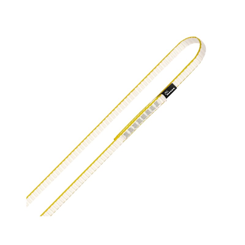 Inoltre, assorbe meno acqua rispetto al nylon, un aspetto importante per l'arrampicata invernale. Il profilo sottile della fettuccia ne consente l'utilizzo su filettature strette e una migliore aderenza anche su punti di ancoraggio marginali.