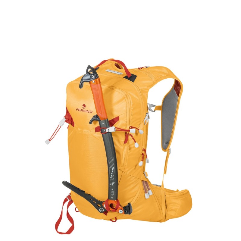 Zaino studiato per lo sci alpinismo: ideale per le uscite "fast and light". Dotazioni quali, la tasca frontale per il contenimento del materiale da auto soccorso, lo scomparto interiore porta ramponi ed il sistema di porta sci frontale lo rendono perfetto per l'attività invernale.