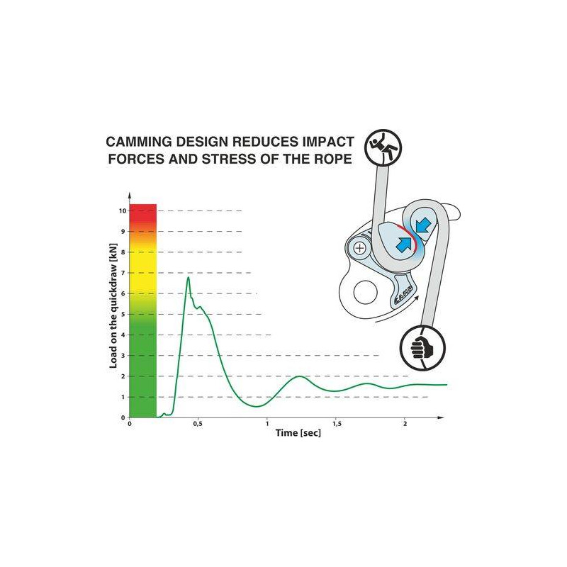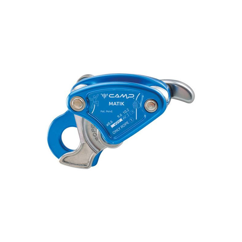 Disegnato per corde intere dinamiche da 8.6 a 10.2 mm di diametro con cui garantisce un’eccezionale fluidità, Matik è caratterizzato da una bassa forza d’arresto e dunque da una grande dinamicità dell’assicurazione. L’esclusivo sistema di frenaggio a pattino interviene gradualmente sulla corda, frenandola dolcemente. Un’altra peculiarità del Matik è l’inedito controllo della discesa, resa estremamente sicura dal sistema antipanico di emergenza che si attiva in caso di azionamento accidentale o incontrollato della leva di sblocco. Il meccanismo interviene quando la leva viene aperta troppo o troppo velocemente, arrestando subito lo scorrimento della corda. Il sistema fa davvero la differenza nel caso di discese nel vuoto o calate in moulinette senza rinvii intermedi, soprattutto con corde sottili. L’assenza di flange mobili impedisce l’utilizzo del Matik aperto: se la camma non è in posizione, la sua estremità posteriore chiude il foro d’attacco e non consente l’inserimento del moschettone. Funzionando con la corda in asse, senza la necessità di ritorcerla sulla guancia, il Matik può ridurre l’usura della calza; la dinamicità dell’arresto caduta evita inoltre stress importanti: tutto questo aiuta a prolungare la vita della corda.