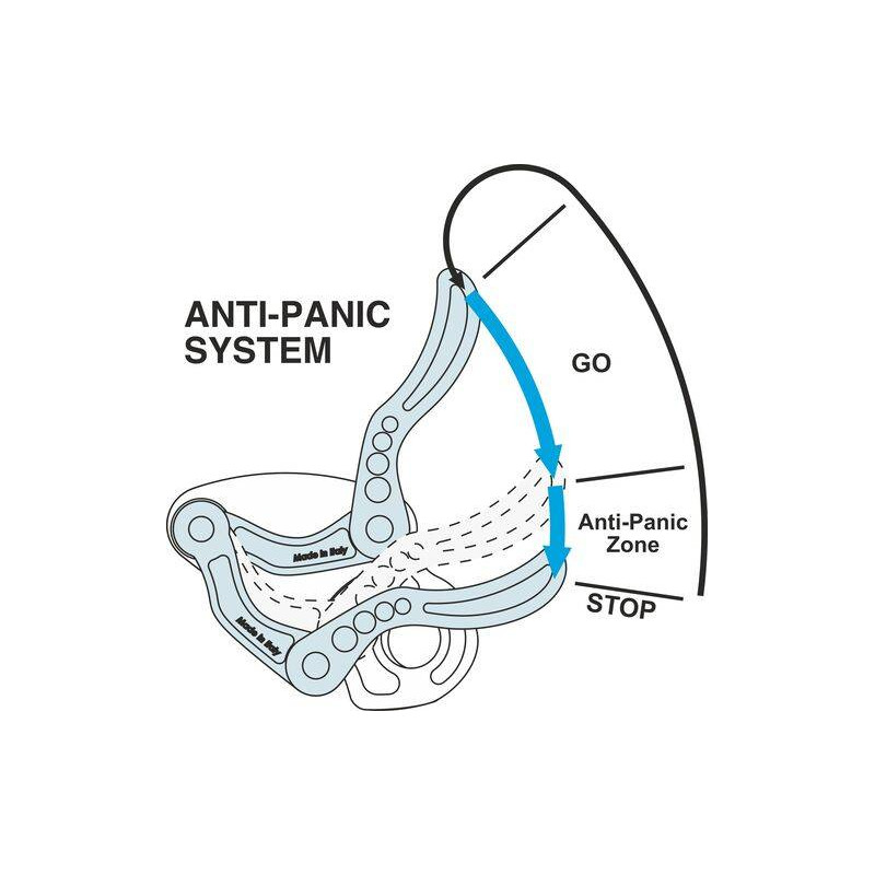 - Sistema antipanico che scatta in caso di azionamento accidentale o incontrollato della leva, minimizzando i rischi durante la fase di calata;