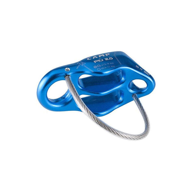 Il Più 2.0 è un attrezzo polivalente, utilizzabile con corde intere, mezze corde e corde gemellari. È provvisto di scanalatura a “V” per un miglior controllo della frizione e inoltre, grazie ad un secondo foro moschettonabile (perfetti per lo scopo l’HMS Nitro Lock e l'HMS Compact Lock), permette di sbloccare e calare senza difficoltà il secondo o i secondi di cordata dopo che le corde sono entrate in tensione.