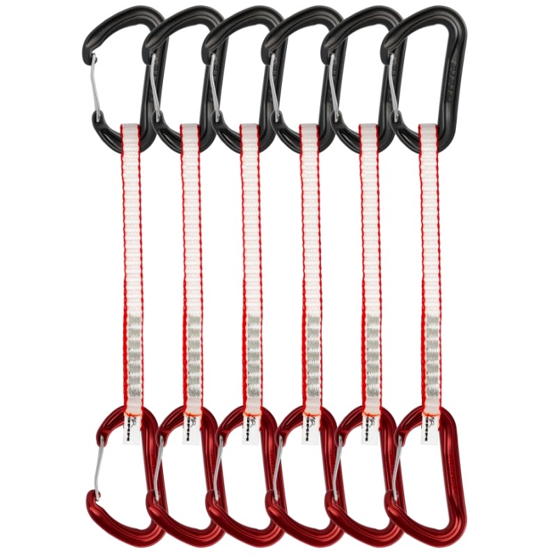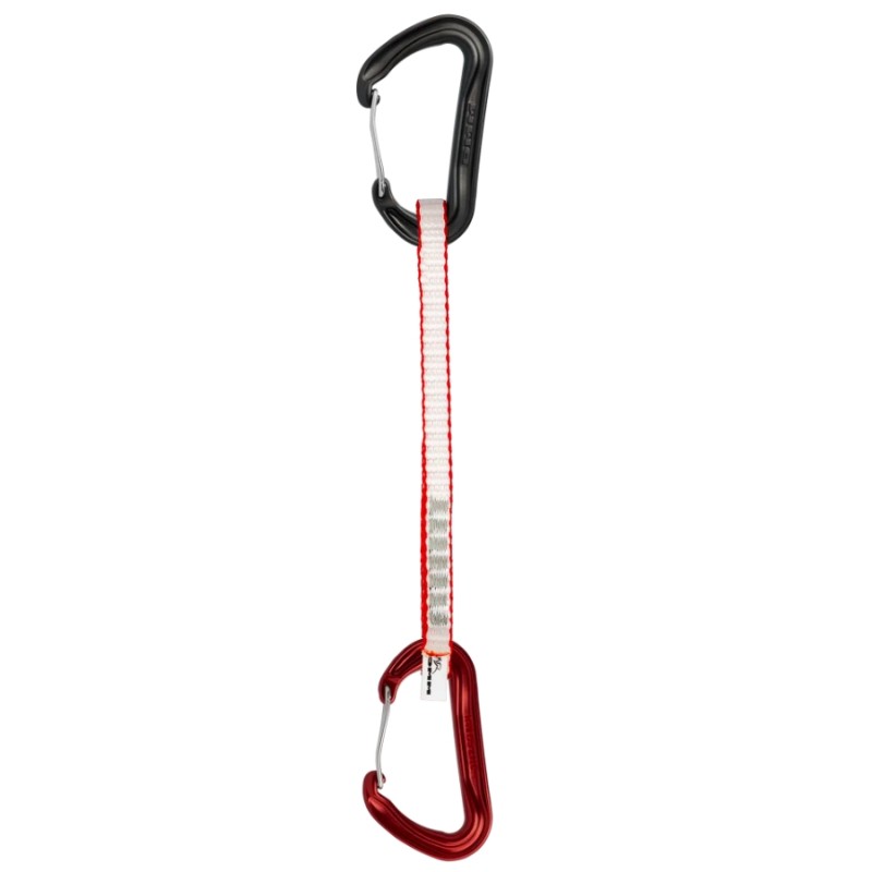 Il contatto con cavi e bulloni può lasciare bordi taglienti sui moschettoni, potenzialmente dannosi per le corde. I moschettoni dei nostri rinvii sono differenziati per colore, consentendo di identificare facilmente l'estremità di aggancio per la corda e l'estremità opposta per la protezione.