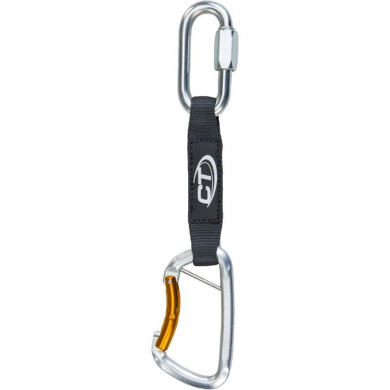 - un moschettone realizzato in acciaio temprato e zincato con leva in lega leggera, barretta removibile che consente di sostituire la fettuccia usurata e chiusura catch-free