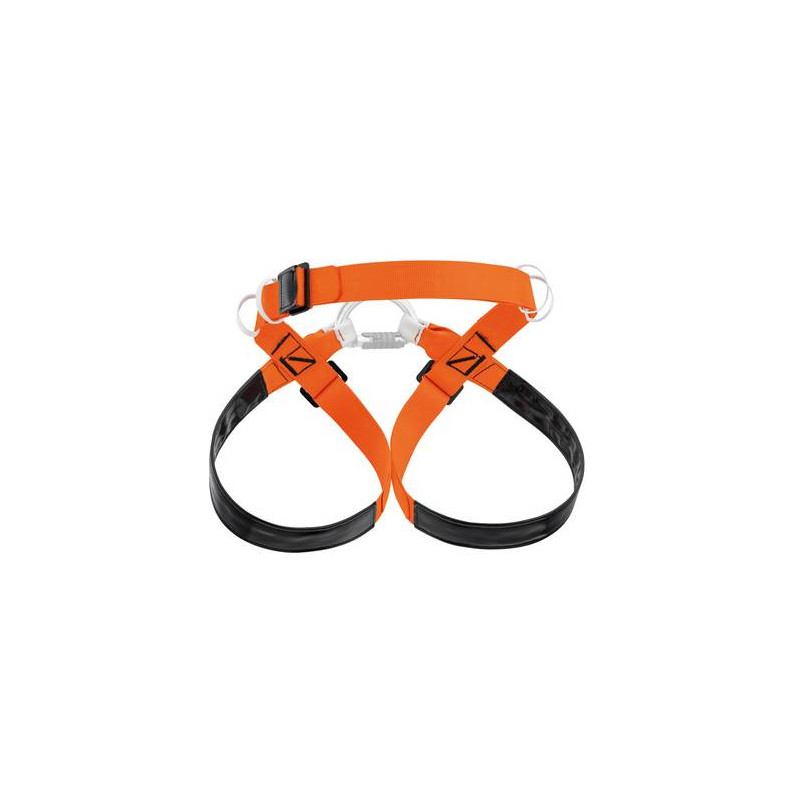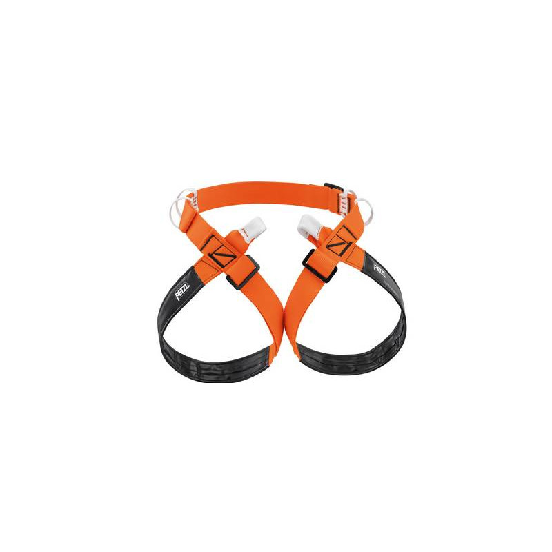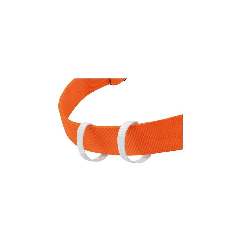 - cuciture di sicurezza di diversi colori per individuare più facilmente la taglia dell’imbracatura (cuciture gialle per la taglia 1 e cuciture nere per la taglia 2).