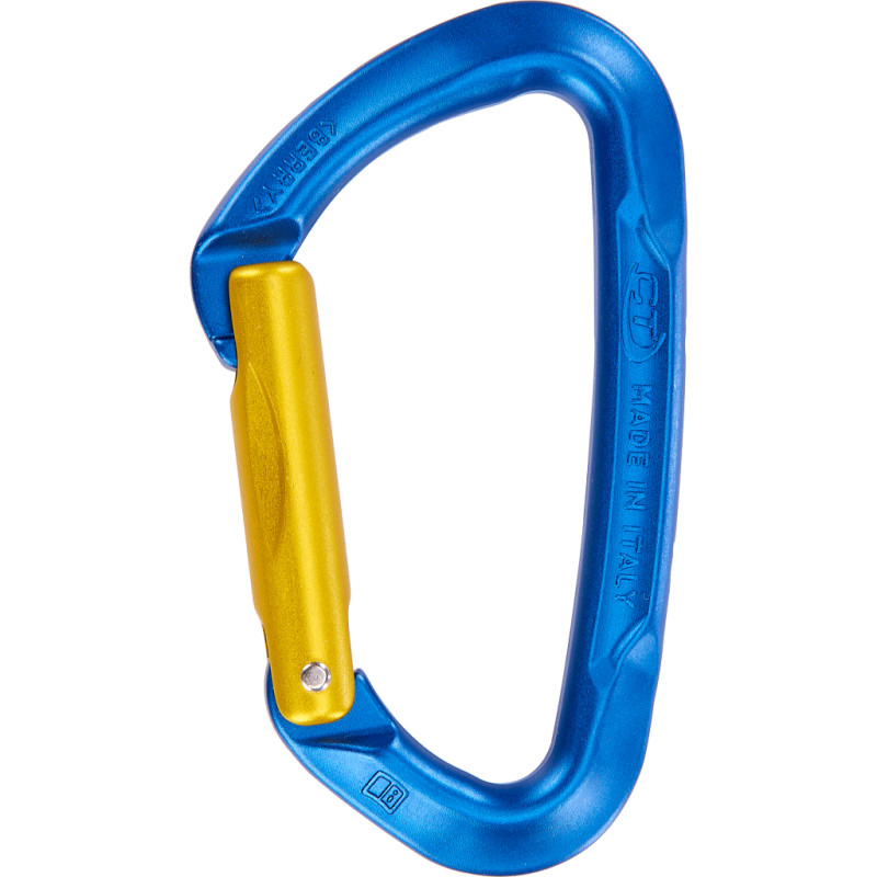 Moschettone compatto in lega leggera forgiato a caldo con leva dritta, concepito per arrampicata sportiva e vie lunghe.