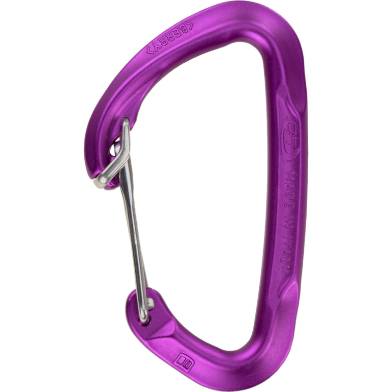 Moschettone compatto in lega leggera forgiato a caldo con leva a filo, concepito per arrampicata sportiva e vie lunghe.