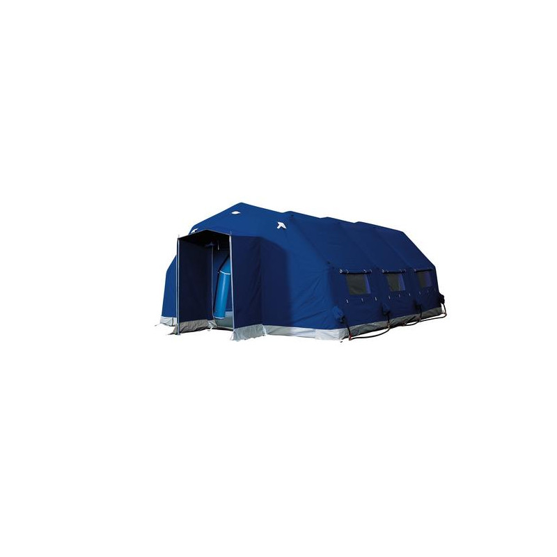 Gli archi di sostegno costituiscono l’armatura pneumatica, mentre tutta la tenda è realizzata in tessuto misto cotone/modacrilico, con caratteristiche di peso e traspirabilità decisamente interessanti rispetto alla soluzione classica delle tende pneumatiche, realizzate interamente in tessuto PVC non traspirante; questo infatti determina notevoli problemi di condensa e di cattivo odore con alte temperature.