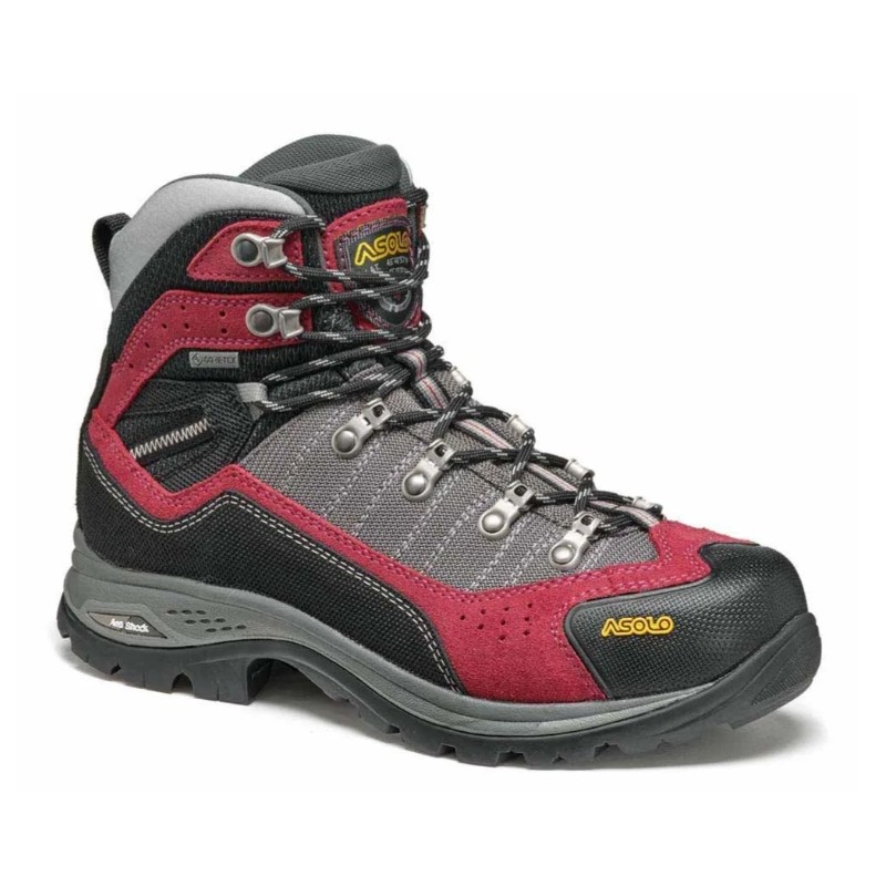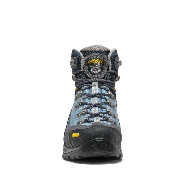 Tomaia in pelle scamosciata idrorepellente e Cordura offre supporto, comfort e protezione. La fodera Gore-Tex Performance Comfort Footwear garantisce impermeabilità e traspirabilità. L'intersuola è realizzata da due densità di Eva: la prima più rigida offre supporto e stabilità, mentre, la seconda più morbida assicura comfort e ammortizzazione. La suola Asolo/Vibram Duo Radiant con mescola MegaGrip presenta un design auto-pulente e assicura un grip eccellente su ogni tipo di terreno, trazione e tacco scolpito per una migliore azione frenante. A completare il modello il puntalino frontale in gomma e allacciatura a ganci direzionali.
