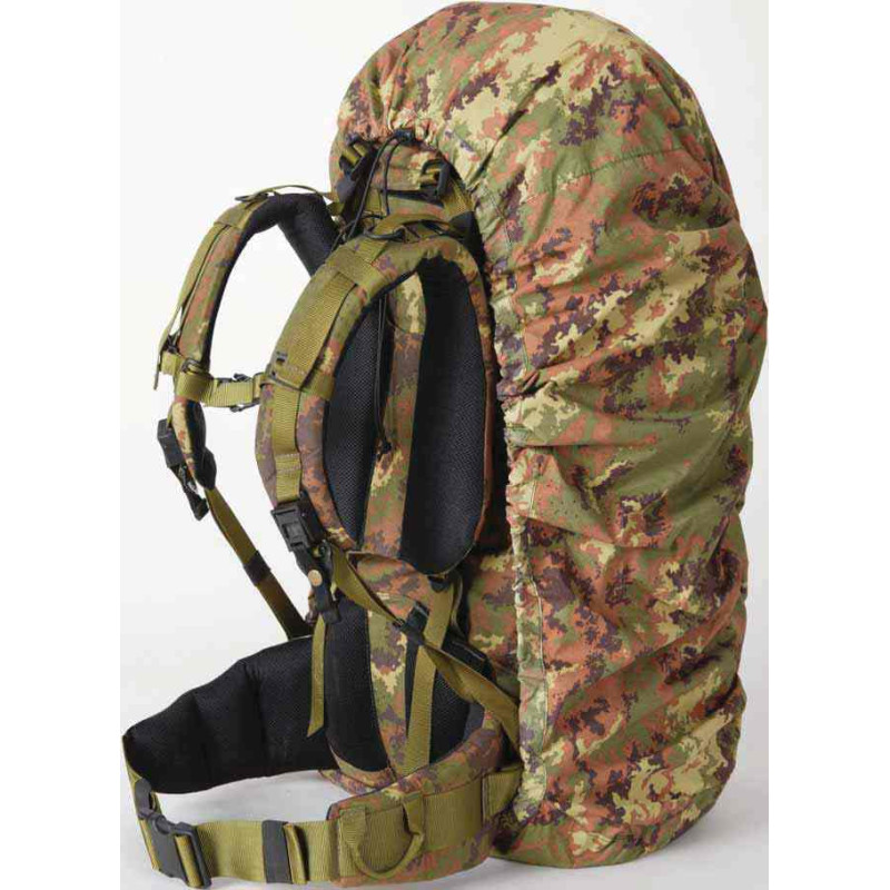 • Doppio sistema di regolazione frontale con cordino e fermacorda che ne permette la riduzione/estensione rendendo il coprizaino adattabile a zaini di dimensioni da 30 a 110 lt.