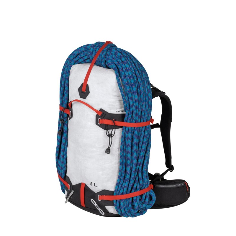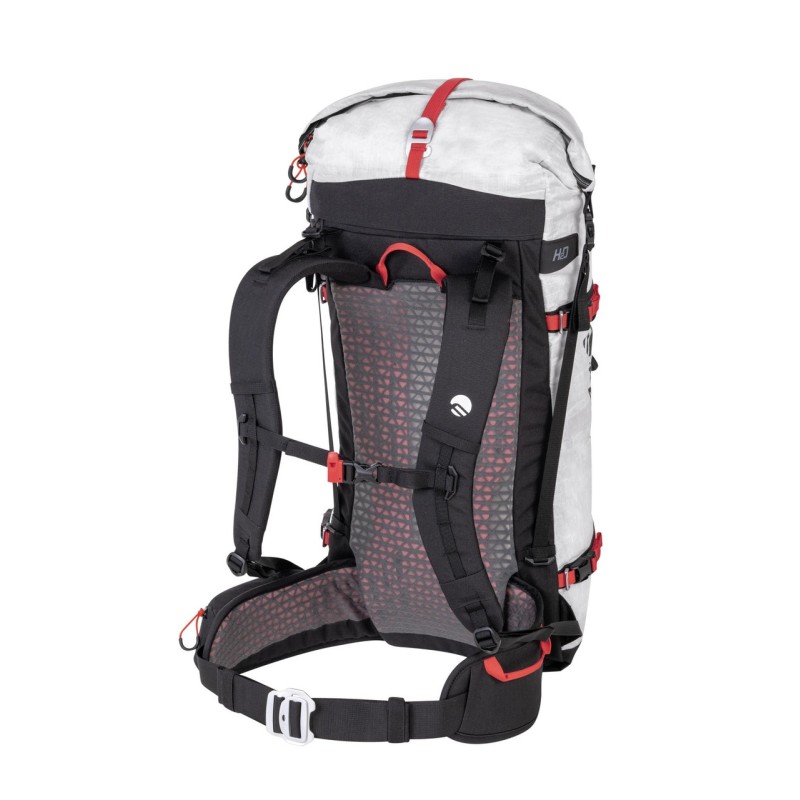 Zaino da alpinismo realizzato in Dyneema® Composite Hybrid 3.2, Cordura® Nylon e rinforzi in SuperFabric® per garantire un rapporto ottimale tra resistenza e leggerezza.