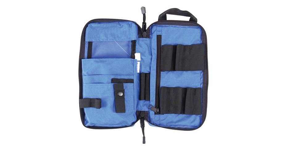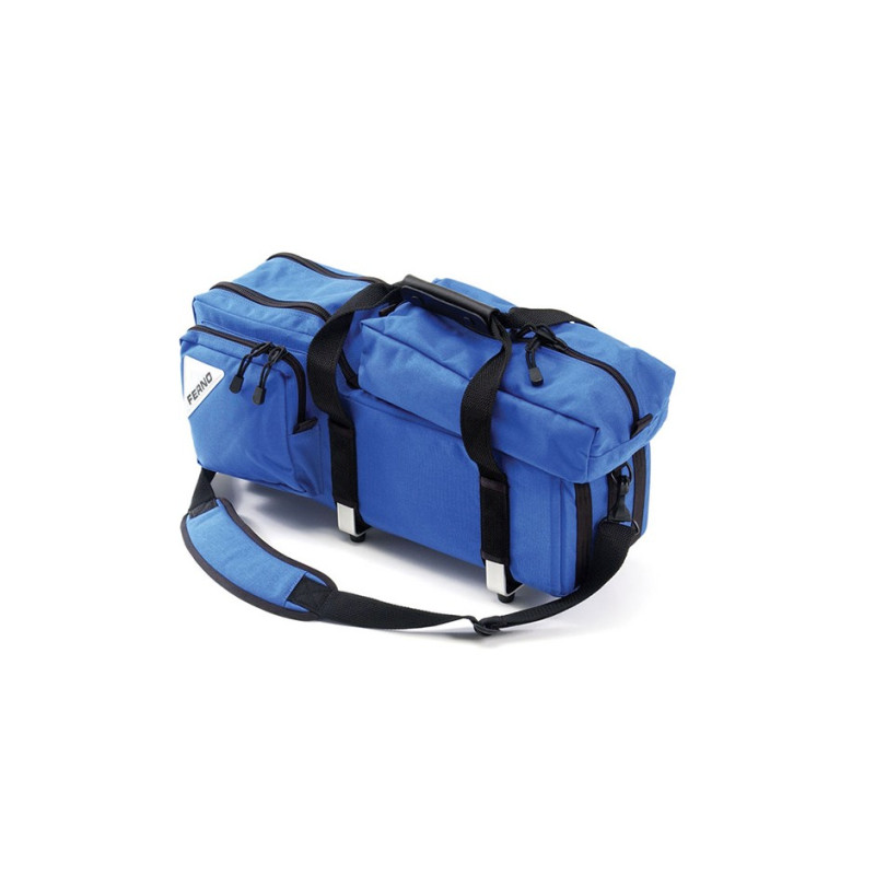 3 differenti possibilità di impugnatura e trasporto - comoda tracolla trasversale regolabile - doppia maniglia superiore di trasporto - 2 staffe in metallo per poterla ancorare alla barella, così da liberare l’operatore da ogni ingombro