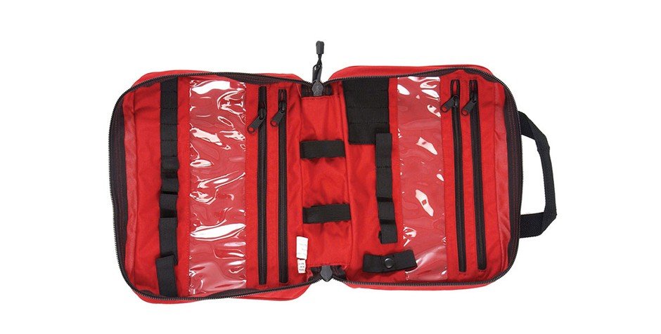 Organizzazione del materiale per trauma con fibbie elastiche e tasche in rete