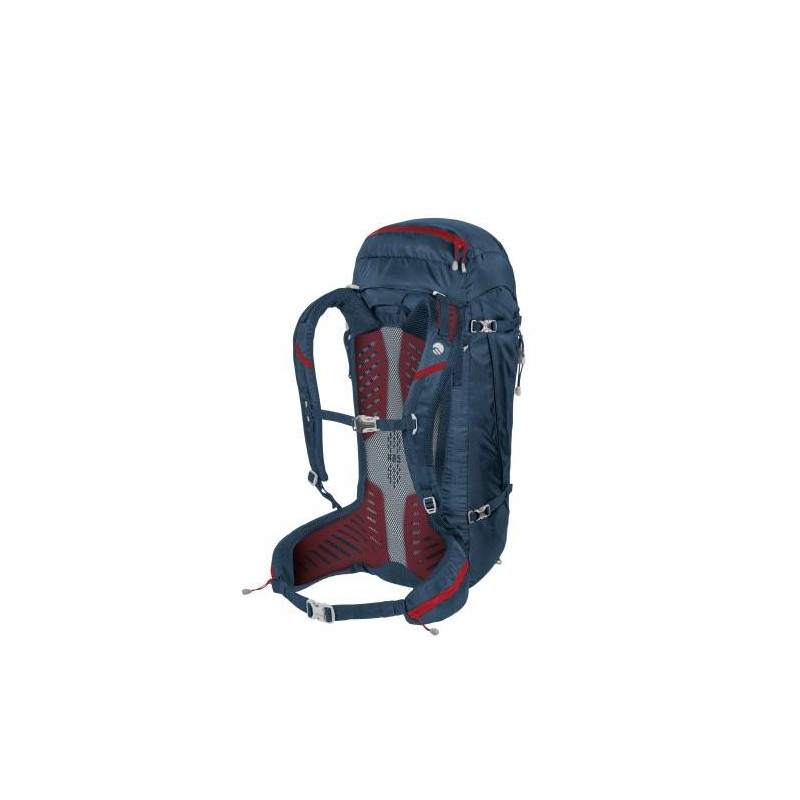 - Dorso "Hollow back system": dorso, spallacci e cintura a vita super traspiranti grazie all'abbinamento di imbottiture preformate e con canali di aerazione e tessuto reticolare super traspirante.