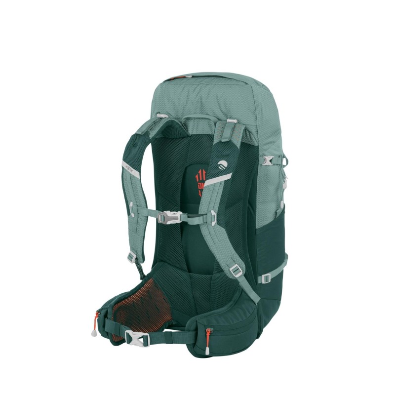 - Dorso con sistema "Dry Net System": il bastino in acciaio flessibile, oltre a garantire una perfetta distribuzione del carico, permette di tensionare la rete che separa lo zaino dalla schiena dell'utilizzatore, garantendo un elevato livello di aerazione.