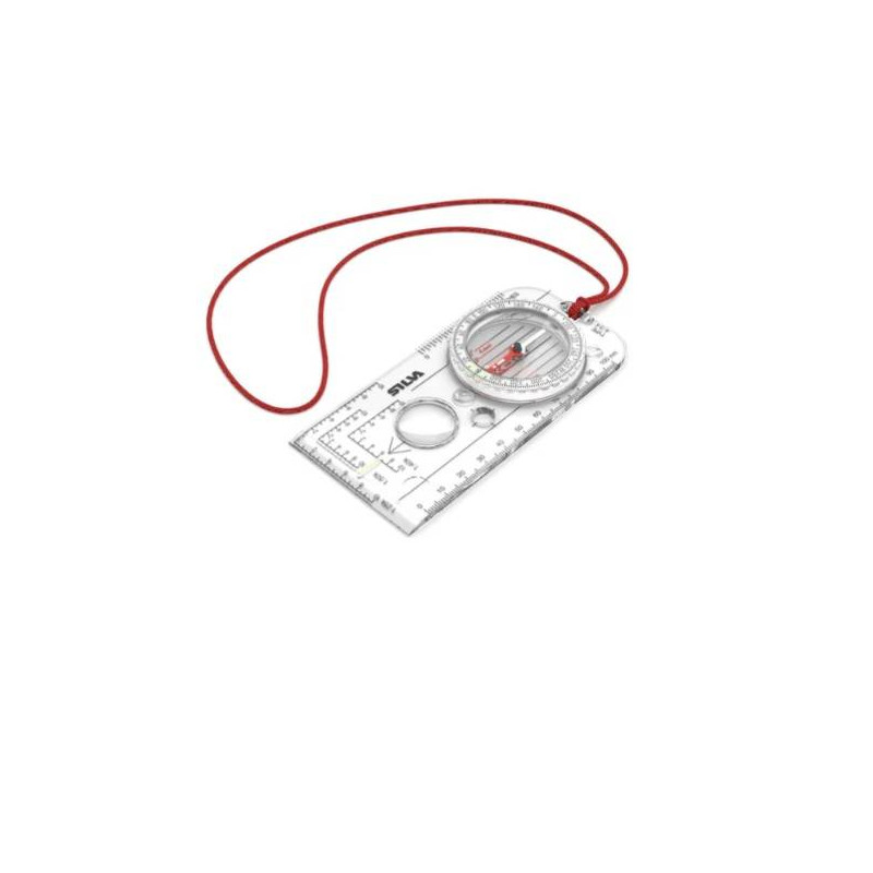 Bussola con piastra base del sistema Silva 1-2-3 - Capsula riempita di liquido - Cuscinetto in zaffiro - Perno in acciaio temprato - Lente d'ingrandimento - Regolazione della declinazione, scala di dek nella capsula - 6 ore di illuminazione / tempo attivo dopo l'attivazione alla luce - Piedini di attrito in silicone - Linee N/S rosse/nere brevettate nella capsula