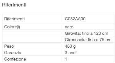 - taglia unica che copre un’ampia gamma di taglie, grazie alle regolazioni della cintura (fino a 120 cm) e dei cosciali (fino a 75 cm),