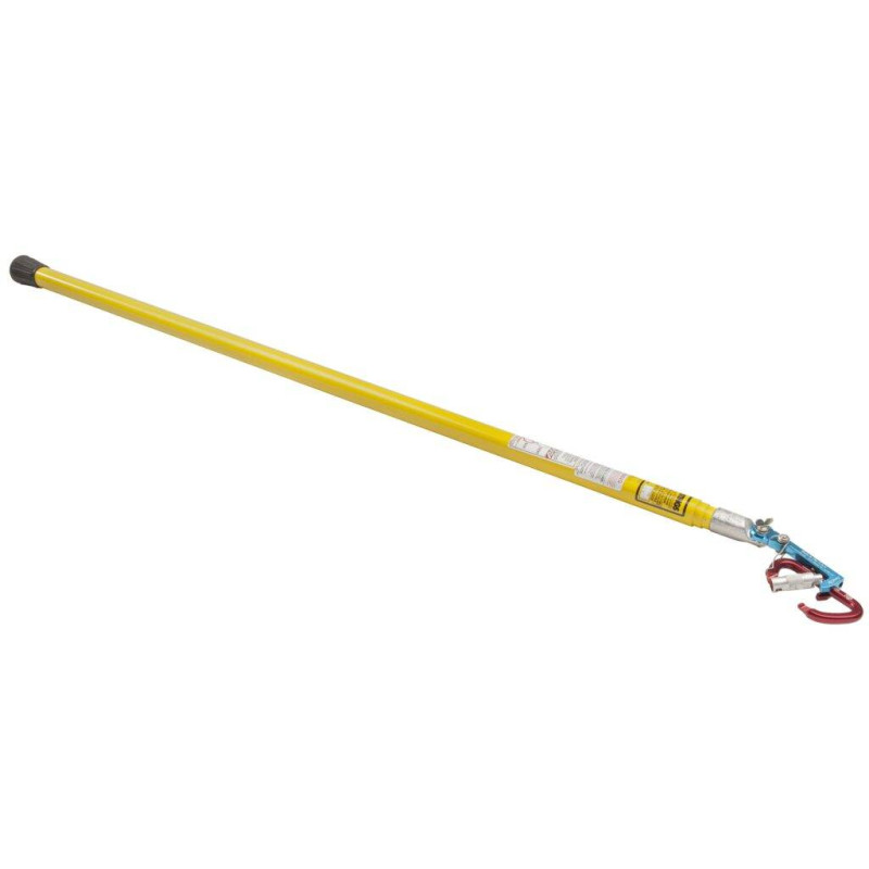 L'asta hot stick in fibra di vetro di forma triangolare ha una funzione "non torcere" che consente a ciascuna sezione di bloccarsi automaticamente senza dover cercare il pulsante. Il palo ha una lunghezza massima estesa di 12′ 7″ e crolla a 58 pollici. Il design ergonomico offre all'operatore una migliore superficie di presa per un maggiore controllo. La testina universale incorpora un design a scarica corona che tiene saldamente il SureClip. Il peso del palo è di 5 libbre e 3 once.