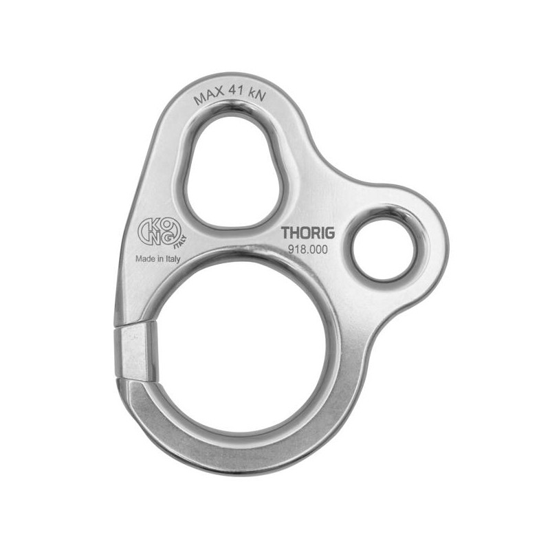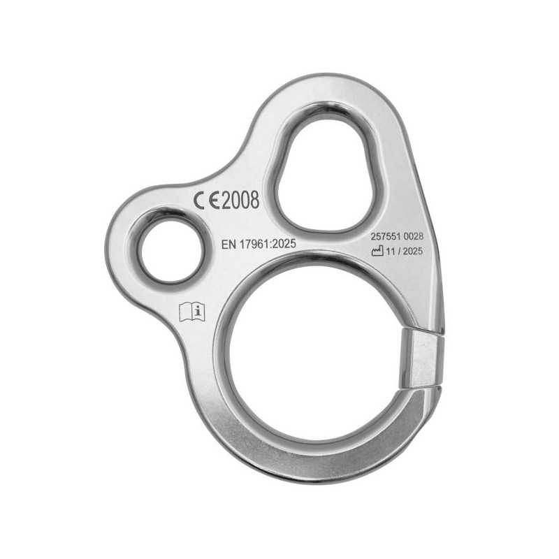 Il foro circolare di minor diametro consente l’inserimento di un altro anello apribile tipo LOTOR, di un normale connettore, maglia rapida o sistemi accessori quali cavi per la scarica della corrente, pesi per il verricello, sospendite, materiali o altro...