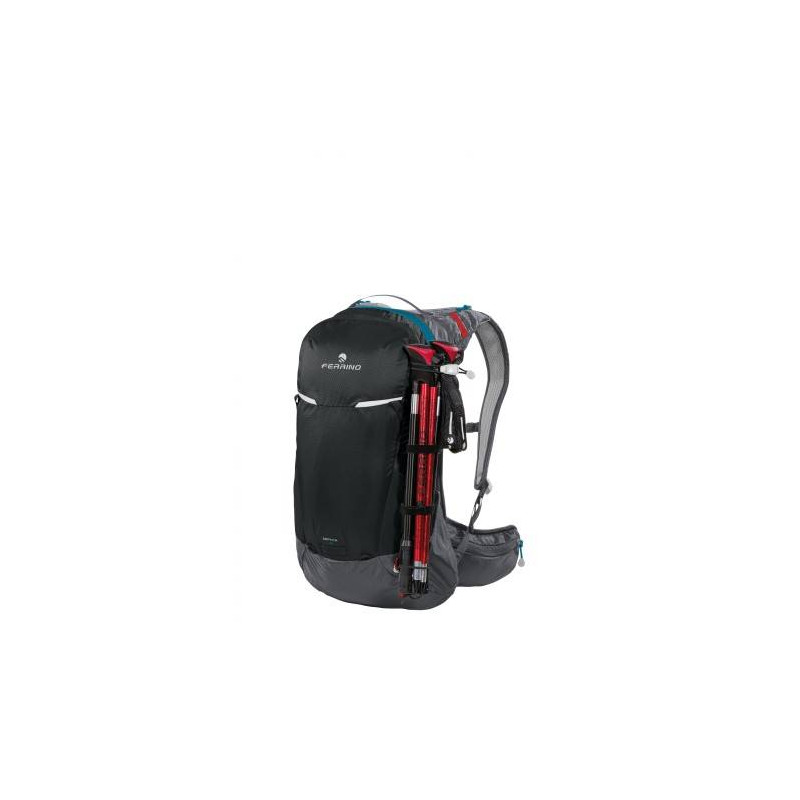 Tasche: Laterali in rete | Di sicurezza in rete con portachiavi | Frontale | Su fascia a vita | Interna sul dorso Accessori: Copri zaino | Porta bastoncini | Compatibile col sistema di idratazione H2 Bag | Asole porta casco | Compatibile con "Helmet Holder" | Loghi rifrangenti | Passante posteriore per la luce di sicurezza | Cinturino pettorale con fischietto d’emergenza